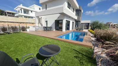At the exterior, you can find an established beautiful garden with many trees and full-growth plants and two swimming pools( 1 for adults and one for children).